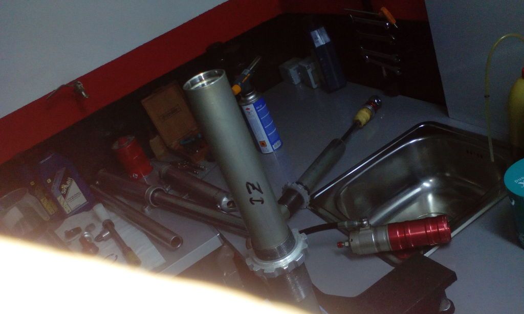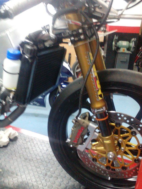 Zde máme zahrnutou rekonstrukci vidličky Ohlinsovy láhve, Yamaha TZ250 ex-Carlos Maurel.