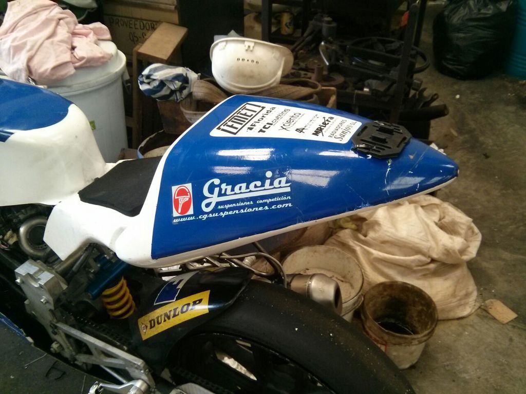 ここには、含まれているフォークオーリンズボトル、元のカルロスマウレルのヤマハTZ250の再構築があります。
